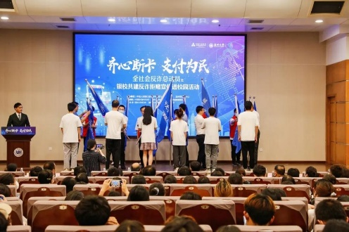为打击治理电信网络新型违法犯罪工作,进一步提高师生的反诈意识和识诈能力,保障师生群体的资金安全,为响应银校共建“无诈校园”,6月11日,BB贝博艾弗森官网组织师生共同参加了“齐心断卡 支付为民——全社会反诈总动员之银校共建反诈拒赌宣传进校园活动”,成立BB贝博艾弗森官方网站反诈联盟队,形成“公安-银行-学校-学生”链条式长效金融防诈宣传模式,共画防诈反诈“同心圆”。