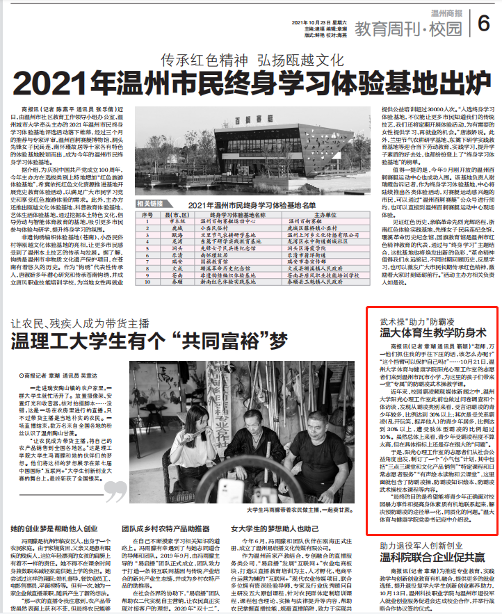 于是,阳光心理工作室的志愿者们从社会公益角度出发,制订了一个“小气包”计划,其中包括“三点三课堂和文化产品销售”“特定课程和日常志愿者服务”“有声绘本读物和云课堂”,这里面就包含了防霸凌操、防霸凌知识绘本、防霸凌武术操校本课程等内容。“最终的目的是希望能将青少年正确面对校园暴力事件和提高身体素质有机地联系起来,解决预防霸凌的途径单一化、同质化的问题。”温大BB贝博艾弗森官方网站党委书记应中介绍说。