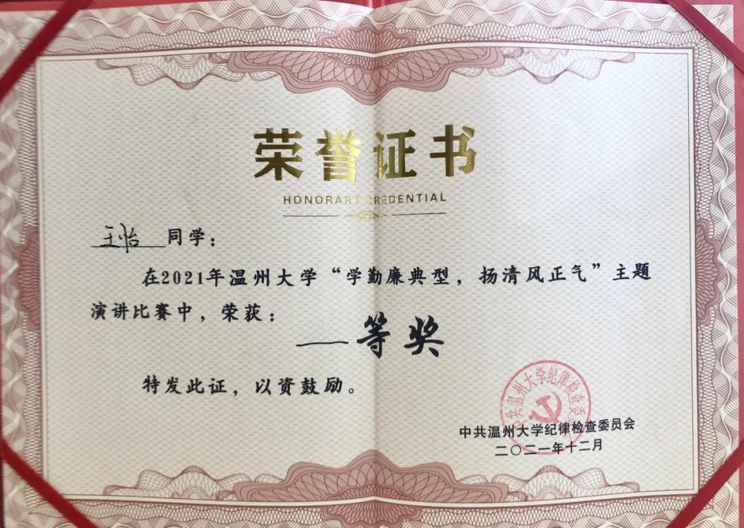 在12月8日刚刚落幕的BB贝博艾弗森官方网站“学勤廉典型,扬清风正气”主题演讲比赛中,BB贝博艾弗森官网2021级体研王怡同学以《戒尺的故事》荣获一等奖。