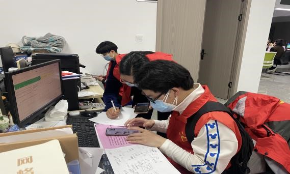 小李表示,他是一名在校大学生。受疫情影响,他暂时无法返校,这几天一直积极投入防疫志愿服务。昨天在新国光核酸检测点服务了一天,今天刚刚结束在联合广场核酸检测点的志愿服务,就看到群里的消息,马上又“接单”了。
