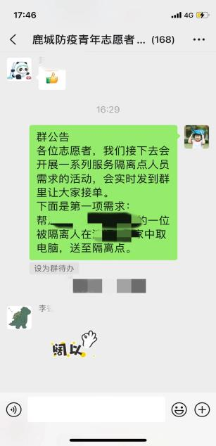 青年志愿者在微信群“实时接单”