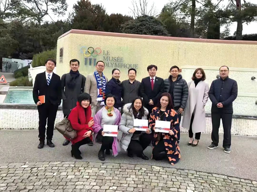 2017年2月,在国际奥林匹克博物馆参观(后排右四为易剑东)。