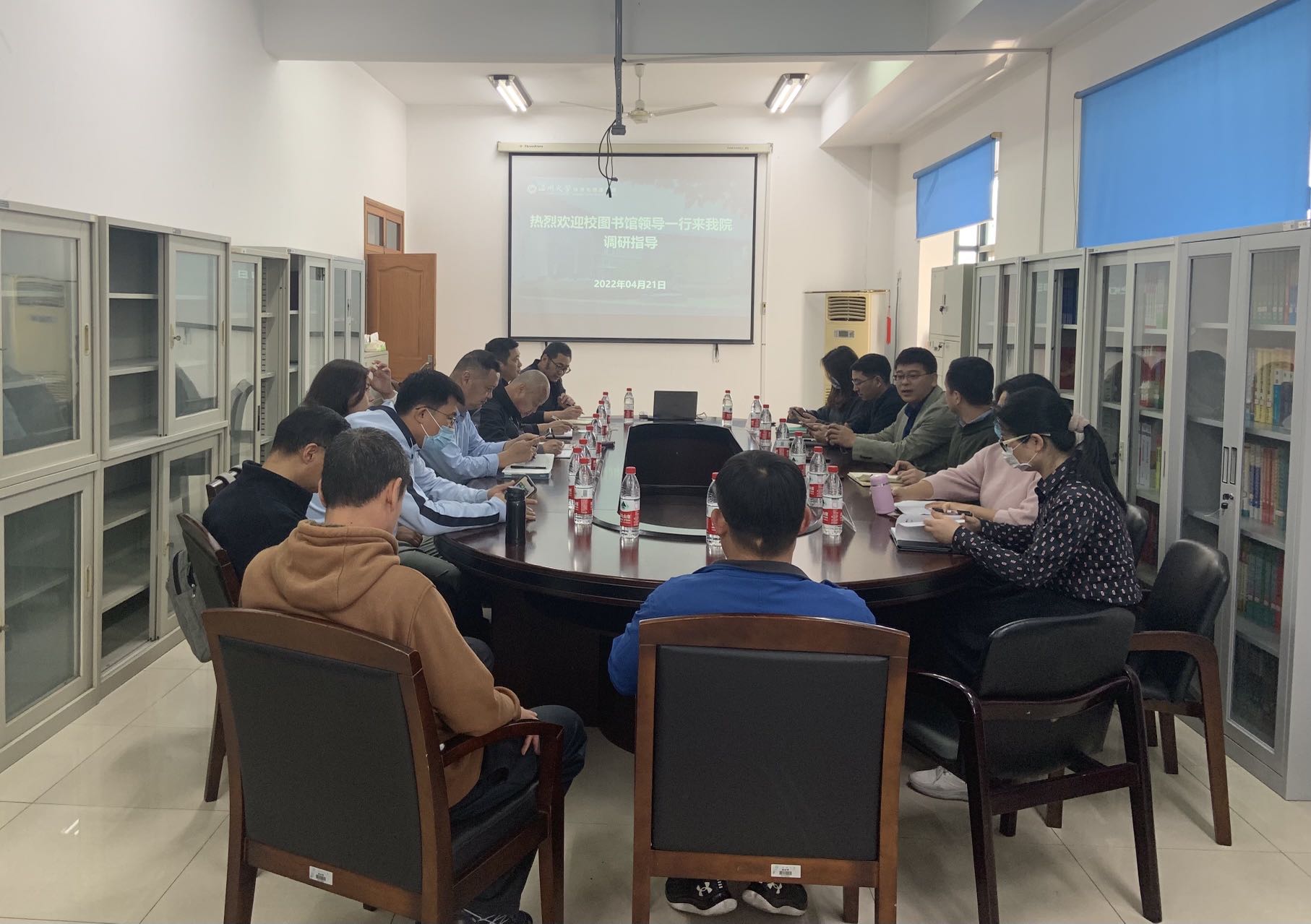 4月21日上午,校图书馆党总支书记杨伟青、副馆长周志峰、办公室主任郑银生、读者服务部主任何婷英、信息服务部副主任丁一敏、信息服务部学科馆员杨静一行六人来院调研指导工作,学院领导班子成员、教师代表出席了座谈会。座谈会在北校体育馆327会议室举行。