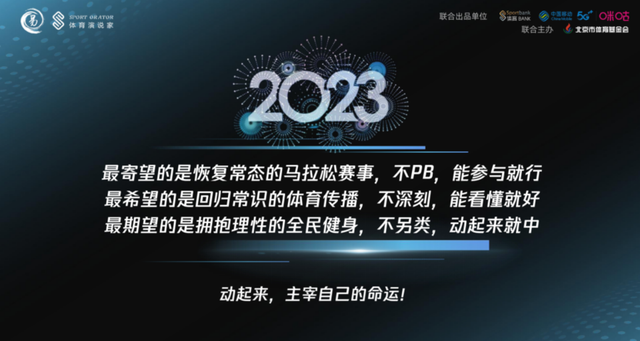 对于2023年,易剑东教授也提出了个人对体育的期冀:“最寄望的是恢复常态的马拉松赛事,不PB,能参与就行;最希望的是回归常识的体育传播,不深刻,能看懂就好;最期望的是拥抱理性的全民健身,不另类,动起来就中!”