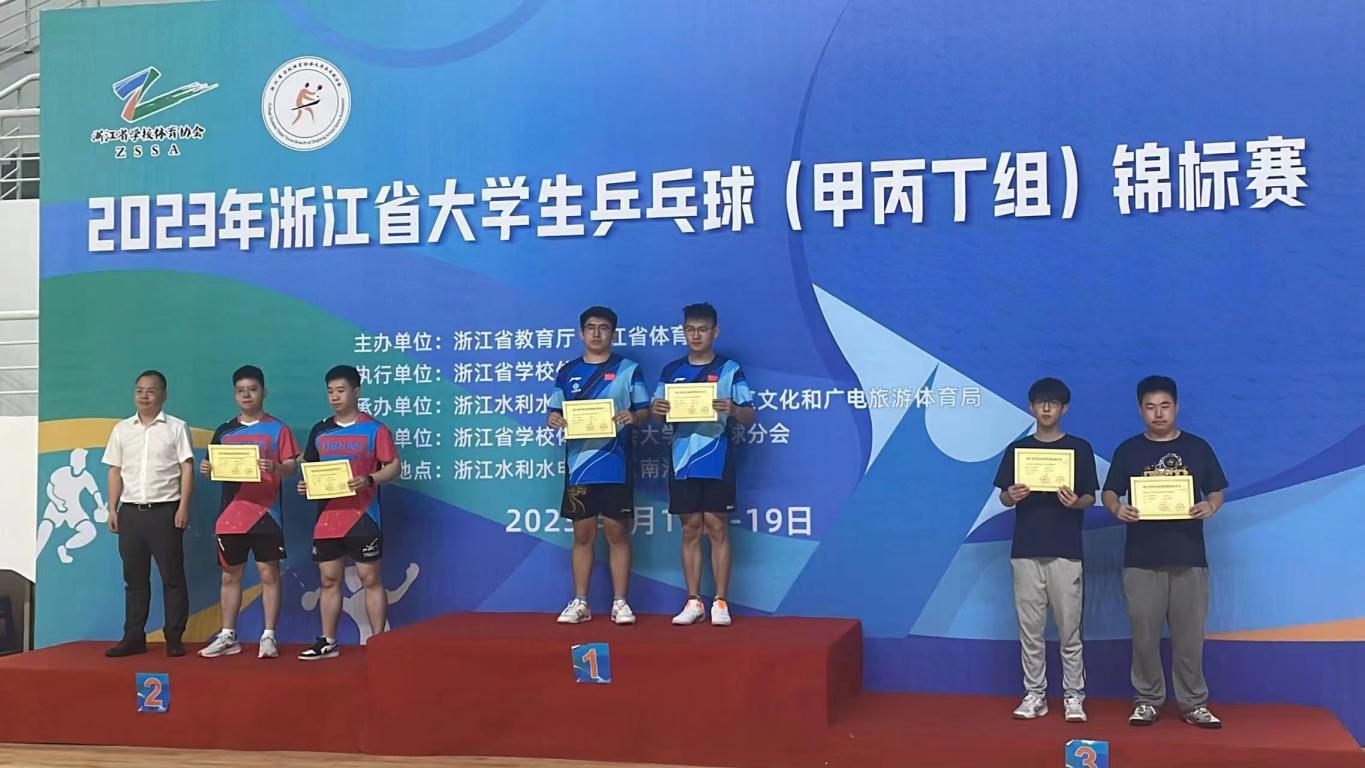 5月16-19日,2023年浙江省大学生乒乓球(甲丙丁组)锦标赛在湖州举行,我校乒乓球队力克省内强队,取得建队以来历史性突破。我校机电工程学院本科生张柏宁、数理学院研究生包鸿杰荣获甲组男子双打冠军;BB贝博艾弗森官方网站本科生陈骁、管福民、吴骁获丙组男子单、双打第三名;队伍获得丙组男子团体第四名;机电工程学院本科生张柏宁获“优秀运动员”荣誉称号!