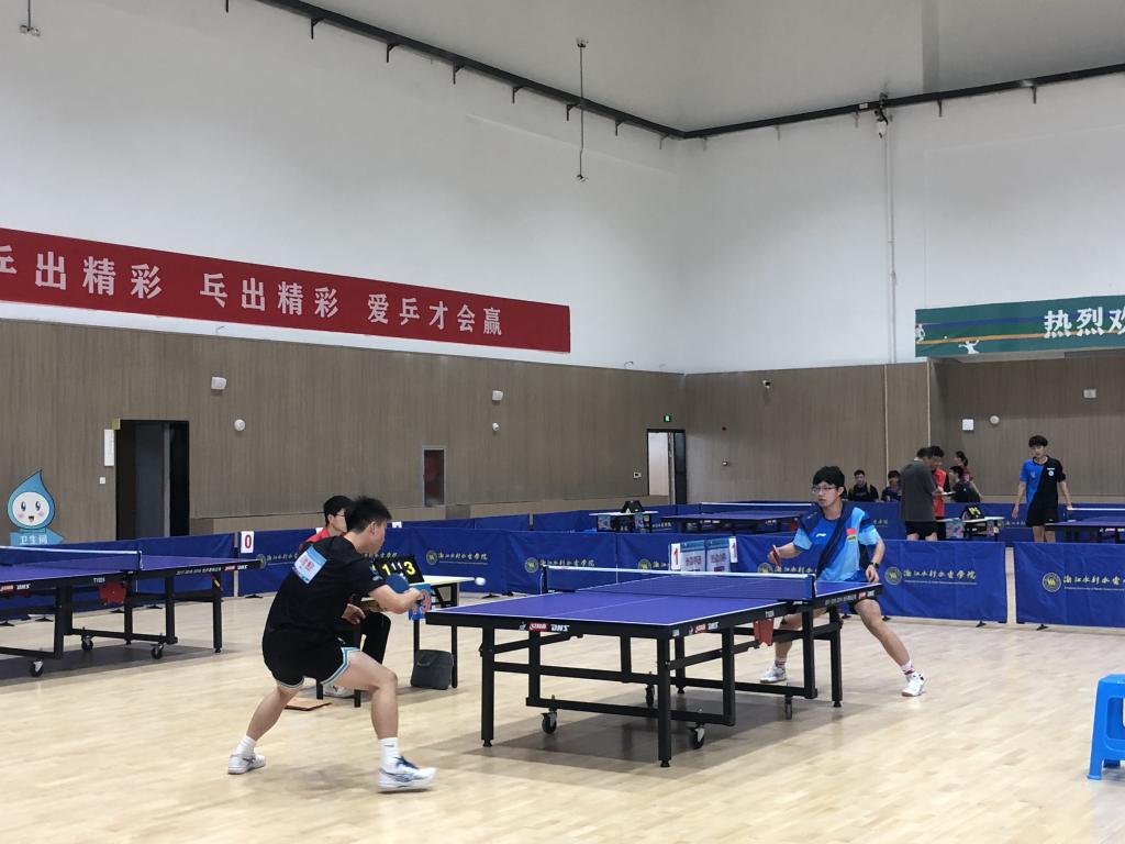 在5月16、17日角逐中,机电工程学院本科生张柏宁、数理学院研究生包鸿杰厚积薄发,战胜了浙江大学、杭州医学院等省内强队一举拿下甲组男双金牌。甲组男团女团顽强拼搏,在小组中战胜老牌强队台州学院。丙组男团在小组赛中战胜宁波大学科学技术学院,以小组第二的身份出线。17日上午,与台州学院鏖战后遗憾落败,获得丙组男子团体第四的成绩。