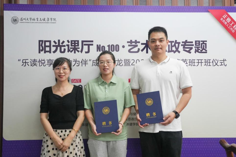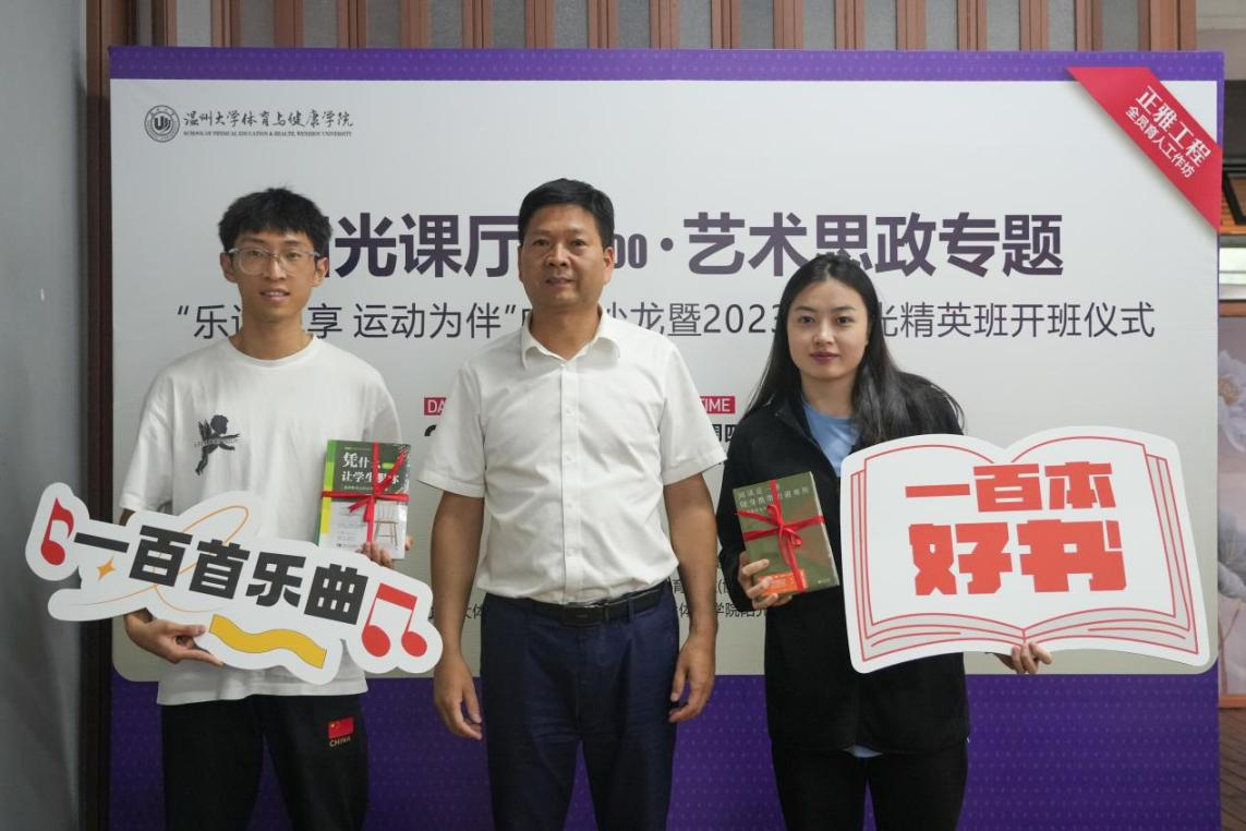 6月8日下午16:00,BB贝博艾弗森官网在鹿城区BB贝博艾弗森官方网站体健学院校友之家(世纪公园点)举行阳光课厅第100期·艺术思政专题 “乐读悦享 运动为伴”成长沙龙暨2023级阳光精英班开班仪式。校党委副书记庄兴忠、校招就处处长蔡锋、校团委书记易招娣、院党委书记杨伟青、体健学院校友会副会长王成锹出席活动。2023级阳光课厅精英班学生代表参加。活动由学院党委副书记、温州市阳光课厅思政工作室主持人王晓华主持。