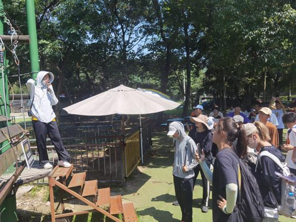 瑞安幸福谷游乐园是浙江省体育局、文旅局授牌的“浙江省运动休闲旅游示范基地”,温州市教育局授牌的“温州研学营地”、“瑞安教育实践基地”,温州市人社局“市级乡村振兴合作创业培训基地”,其“丛林拓展”获得温州市体育局、旅游局颁发“温州市运动休闲旅游优秀项目”,结合营地、拓展、水上活动等多种休闲体育活动,是温州市较具代表性的休闲体育企业。同学们抵达后由负责人亲自接待,导览整个园区,特别是欧洲引进的丛林拓展项目。参观完毕,负责人特别与同学们交流,提供暑期实践的邀约,提供岗位培训、衔接培养方案的自主实践课程。