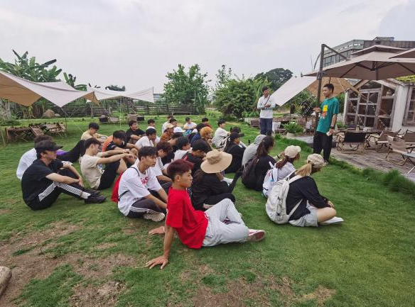 七都岛是美丽温州体验地,低碳生活美丽乡村的代表,拥有全国文明村樟里、以及环岛自行车绿道。鹭野星空大白熊轻奢营地是户外运动的露营与乡村振兴政策有机结合的成功范例,近年已是热门的网红打卡景点,也彰显了休闲体育、体旅融合的另一种业态。同学们到达后,先在小洋楼、游泳池前的草地上席地而坐,听取经理与投资人对项目的介绍,然后再引导同学们参观场地。参观完毕后,同学们到樟里的温州自行车发展协会租借自行车,然后先由李炎老师指导骑行的安全教育,再分3个小队开始环岛骑行。途中还见到露营、航模、滑翔伞等休闲运动项目,经历自行车故障排除等体验,顺利完成1个多小时的骑行。