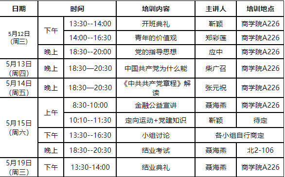 定于5月12-19日举行,具体时间和课程安排(暂定)见下表。