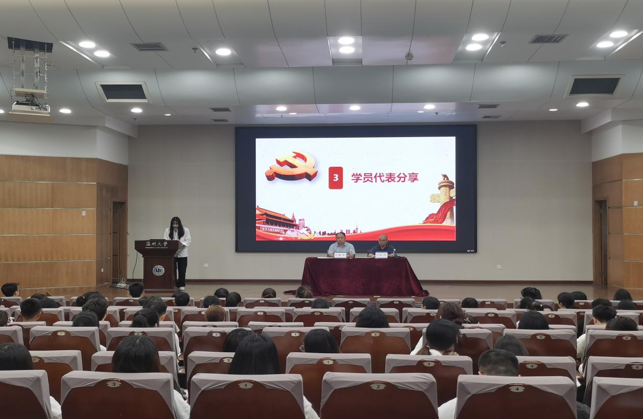 首先,靳颖老师播放了本次培训班的视频,回顾了五天的党课学习经历,并对各位预备党员的顺利结业表示了热烈的祝贺。