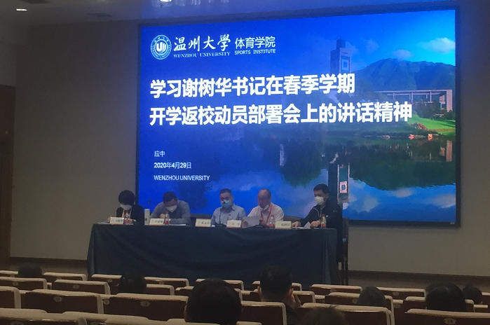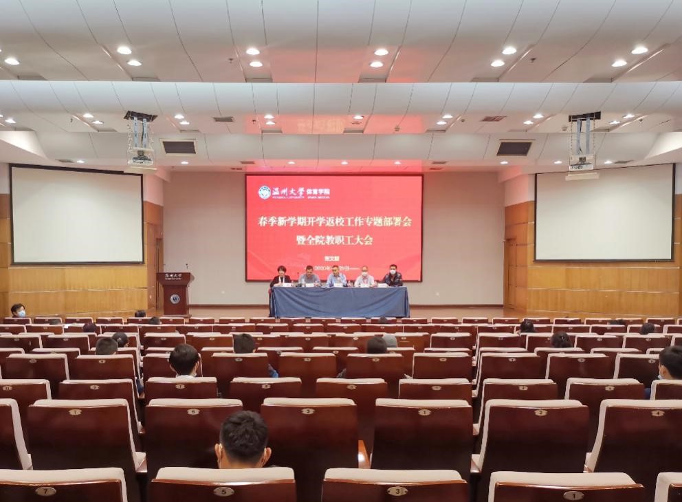 4月29日,北校区科技报告厅,体育学院召开春季新学期开学返校工作专题部署会暨教职工理论学习会,学院全体班子成员及教师参加会议。会议由张文健院长主持。
