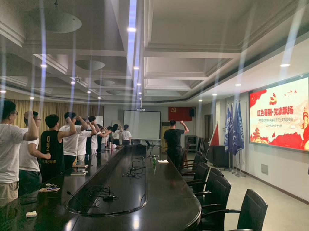 7月17日晚上,体育学院研究生党支部在北校区行政楼125会议室开展了以“红色暑期·党旗飘扬”为主题的党日活动。本次会议由体育学院研究生党支部书记桑国强老师主持,体育学院学生科科长靳颖老师参与了此次活动。