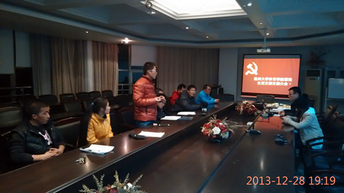 2013年12月28日晚上7点,BB贝博艾弗森官方网站体育学院研究生党支部在北校行政楼一楼会议室召开了支部全体会议,出席这次会议的有支部全体正式党员和部分预备党员,会议由支部书记苑其林同志主持。