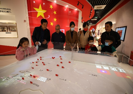 从瑞安西山的山脚拾级而上,远远便看见“国旗教育馆”在翠绿树林中格外醒目,大门上“国旗教育馆”5个金色大字,每个字均从国旗设计者曾联松生前书信中筛选出来。在场馆一楼序厅,一块高约19米的大屏幕上呈现着天安门广场的动态画面,天安门城楼雄伟壮丽,旗杆上的国旗迎风飘扬。全体成员面对高高飘扬的国旗,感慨万千,无数中华儿女抛头颅洒热血,才换来今天繁荣昌盛的大国气派!在国旗诞生厅重温了国旗的设计理念,感悟曾联松所寄寓的满腔爱国热忱和对祖国美好未来的衷心祝愿。在国旗知识厅深入了解了国旗的相关知识。国旗荣耀厅展示了祖国崛起的一个个历史时刻,经典回顾了中国共产党的辉煌成就。全体成员在具有代表性的展物前驻足领略、热烈讨论,深入学习了国旗的诞生历程、国旗的制作、国旗的含义、国旗的标准规范、国旗与天安门广场以及国旗法等有关内容。