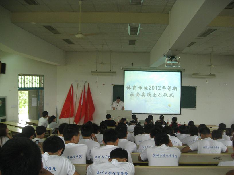 2012年6月26日上午10点整,BB贝博艾弗森官方网站体育学院2012年暑期社会实践出征仪式在北校一号楼101教室隆重举行。出席本次仪式的有院党委书记周冀、学生科科长高顺德、各实践队指导老师、校实践服务中心主任以及各实践队全体成员。
