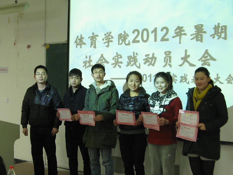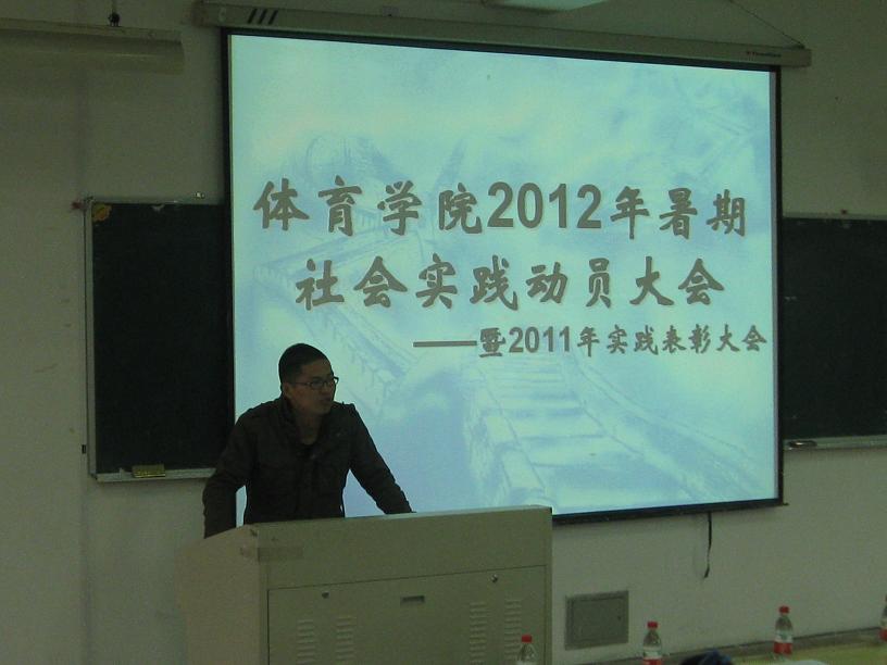 2012年3月14日下午一点,BB贝博艾弗森官方网站体育学院2012年暑期社会实践动员大会--暨2011实践表彰大会在北校人文楼101教室隆重召开。到场嘉宾有体院团委书记冯建军老师、温大社会实践中心负责人、体院团委副书记及院学生会主席、副主席,体育学院大一大二的学生如期参加了本次大会。
