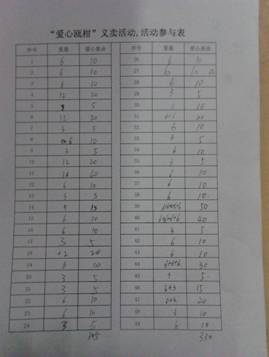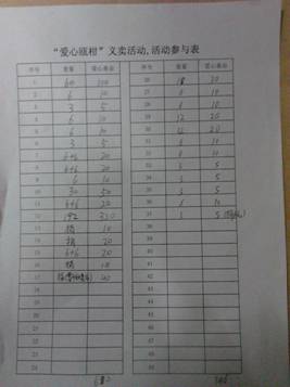 三、“爱心瓯柑”义卖活动募捐明细表