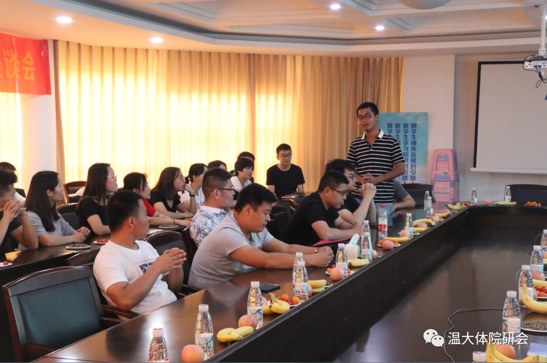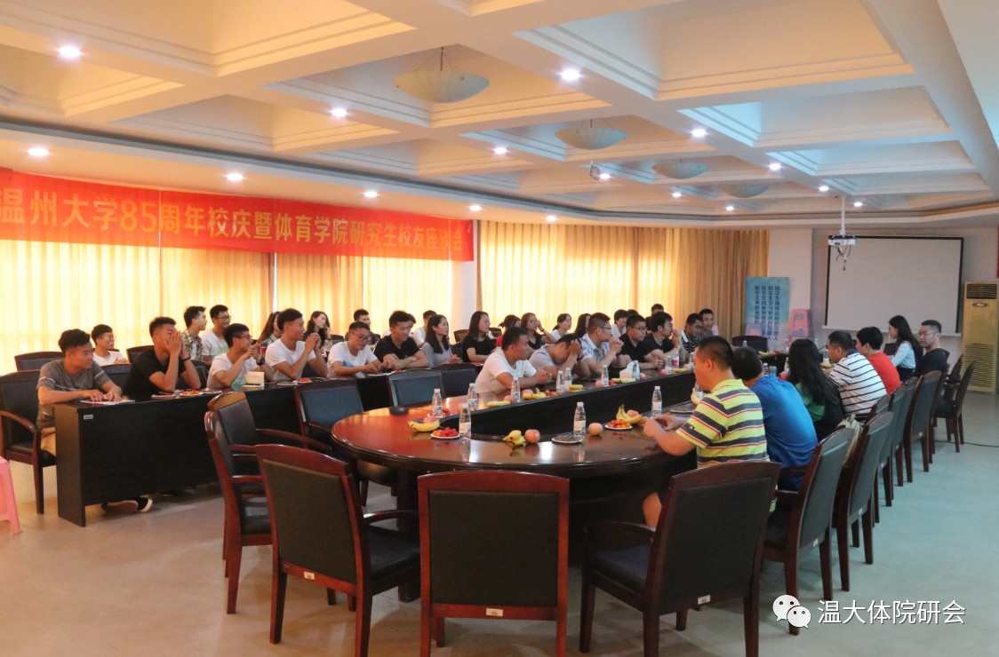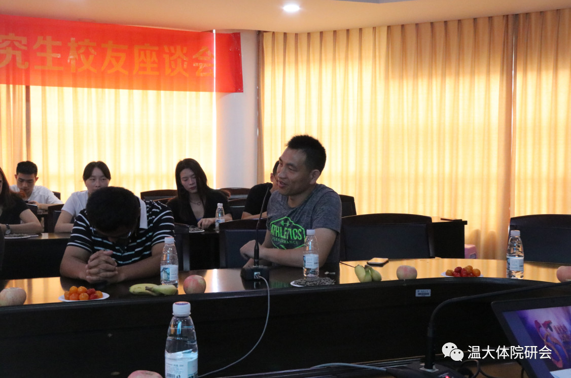 5月19日上午9时许,BB贝博艾弗森官方网站85周年校庆暨体育学院校友座谈会在北校区行政楼125会议举行。出席本次校友座谈会的有周冀书记、张文健院长、叶建强副院长、办公室副主任张洪斌、研究生辅导员陈莉、硕士生导师吴宝升、张松林以及全体在校研究生。